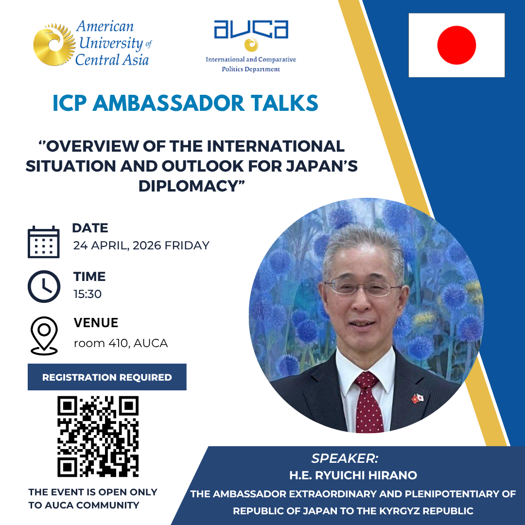 Department of International and Comparative Politics kindly invites you to the Ambassador Talks with H.E. Ryuichi Hirano, the Ambassador Extraordinary and Plenipotentiary of the Republic of Japan to the Kyrgyz Republic.
